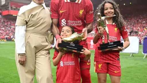 النجم المصري محمد صلاح نجم ليفربول، يحتفل مع عائلته بجائزتي هداف وأفضل...