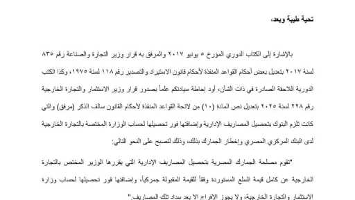 البنك المركزي يُصدر كتابًا دوريًا بشأن تحصيل المصاريف الإدارية المطبقة على العمليات...