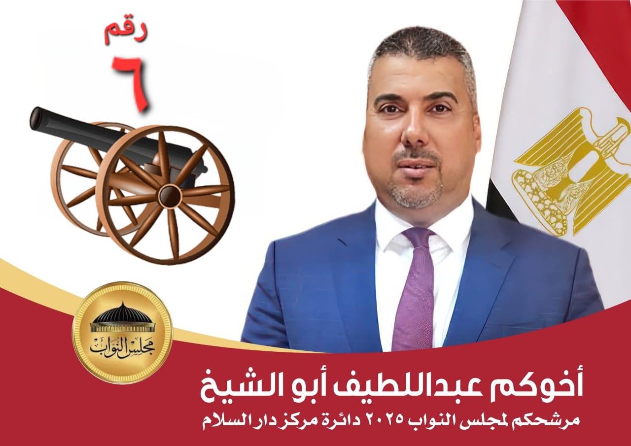 تقدم المرشح الشاب عبداللطيف أبو الشيخ بأوراق ترشحه رسميًا لانتخابات مجلس النواب عن المقعد الفردي بدائرة دار السلام بمحافظة سوهاج، وحصل على الرمز الانتخابي "المدفع" ورقم 6 في كشوف المرشحين.